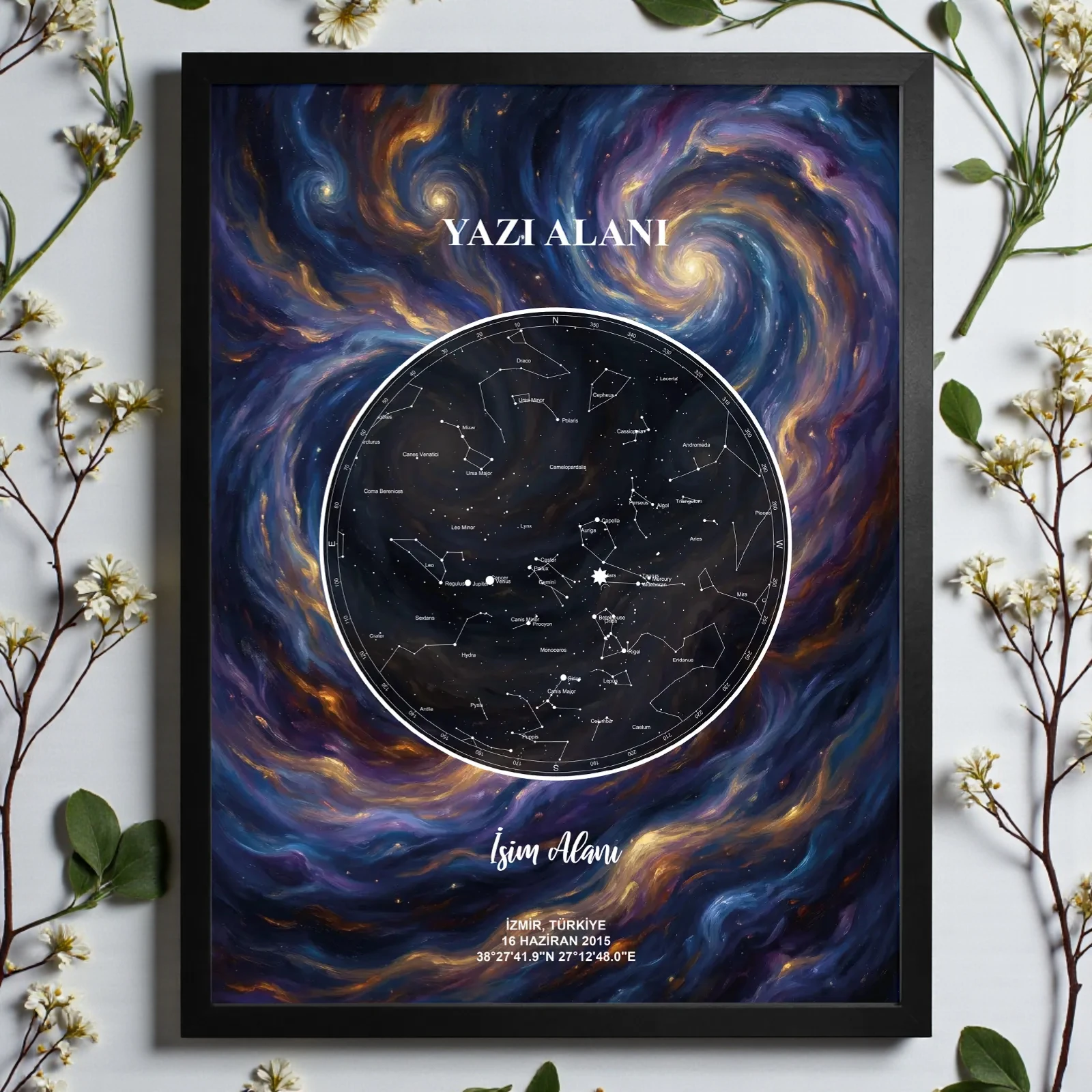 Galaktik Harmoni Gökyüzü Haritası – Çerçeveli Tablo