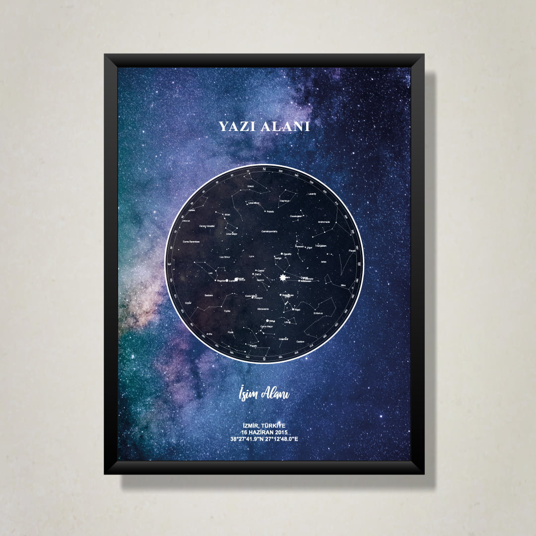 Gökyüzü haritası sizin için özel olan bir tarihte (doğum günü, evlilik yıl dönümü, tanışma, özel anlarınız vs.) verdiğiniz konumda yıldızların o gün gökyüzünde nasıl gözüktüğüne göre oluşturulmaktadır.
